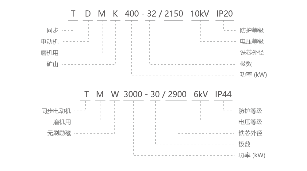 TDMK系列矿山磨机用大型交流三相同步电动机,是矿山、水泥等行业的核心驱动设备,也是我公司自1950年建厂以来开发生产的主要产品。本系列电动机(包括TDMK系列有刷同步电动机和TMW系列无刷同步电动机)因具有起动转矩大的特点,广泛应用于矿山、水泥等行业。主要用于驱动转速较低、功率较大的机械设备,主要传动格子型球磨机、棒磨机、磨煤机等。